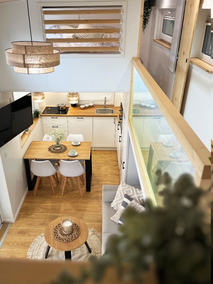 Nos Tiny Houses sont équipées d’une cuisine, d’une salle de bain, d’un espace nuit et d’un aménagement intérieur haut de gamme. Des fonctionnalités supplémentaires peuvent être ajoutées sur demande.
